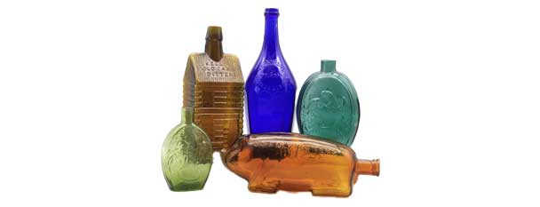 Online Auction of Early American Bottles & Flasks From The 18th & 19th Centuries. Forty Select Lots Of Historical, Pictorial & Portrait Flasks with Whiskey, Cologne, Jar & Soda Examples.